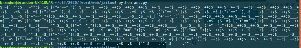 Before navigating to the website, I took a look at the source code. Looks like it’s filtering almost everything out except some special characters. The preg_match_all function takes a regular expression and a string as the first two parameters, if the string does not satisfy the regular expression, it returns false. And in this case, the regular expression is finding $_()[];+=" characters in the $cmd string, which will be one of the HTTP parameter as well.