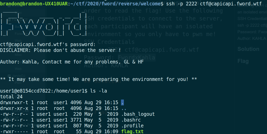 ssh -p 2222 ctf@capicapi.fword.wtf