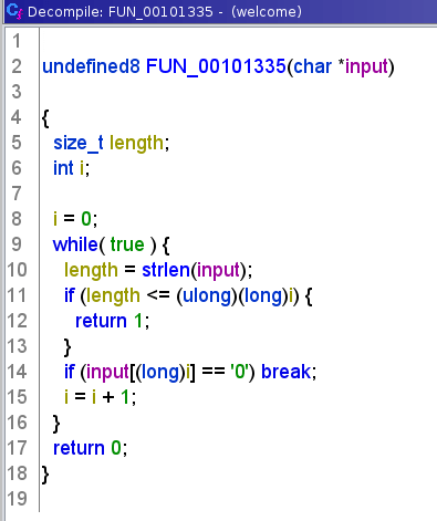 Now here it is! First thing I did was to change the function name to main by clicking on the function name and select rename function.