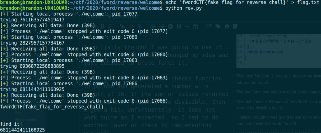 I initially thought I was going to use z3 to solve it, but I then changed my idea and just decided to brute force it.