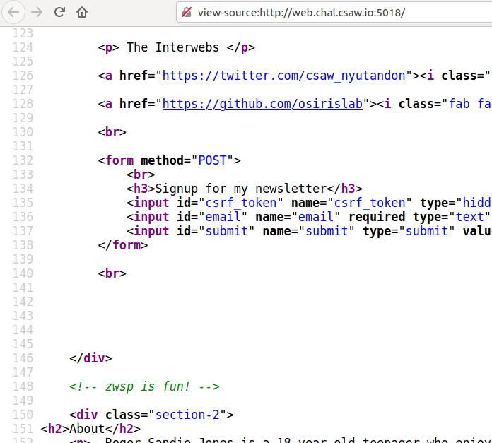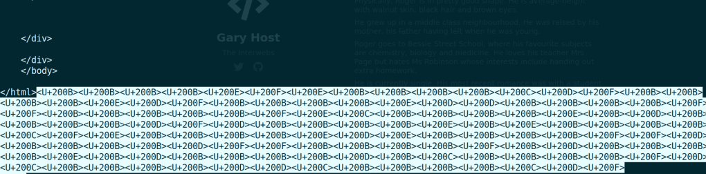 After some researching, “zwsp” stands for “Zero-Width-Space”, essentially some unicode characters which do not appear to have space. There are also some zwsp steganography around, so I assume this is going to be the route. But I did not see any ‘spaces’, so I decided to use curl to look for special characters.